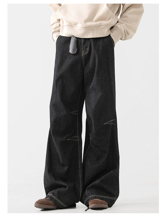 リラックスフィット ウオッシュドデニムパンツ ブラック