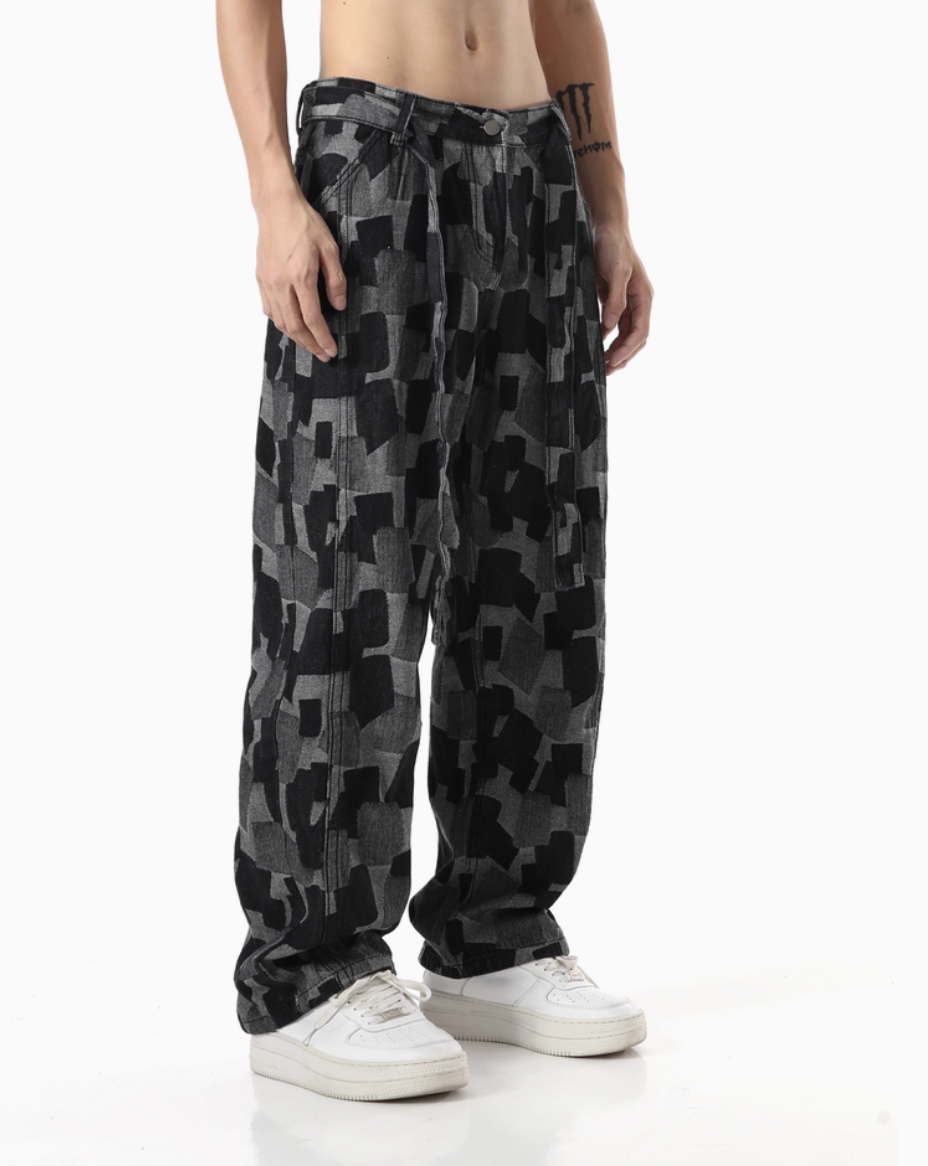ジオメトリックパッチ・リラックスデニム