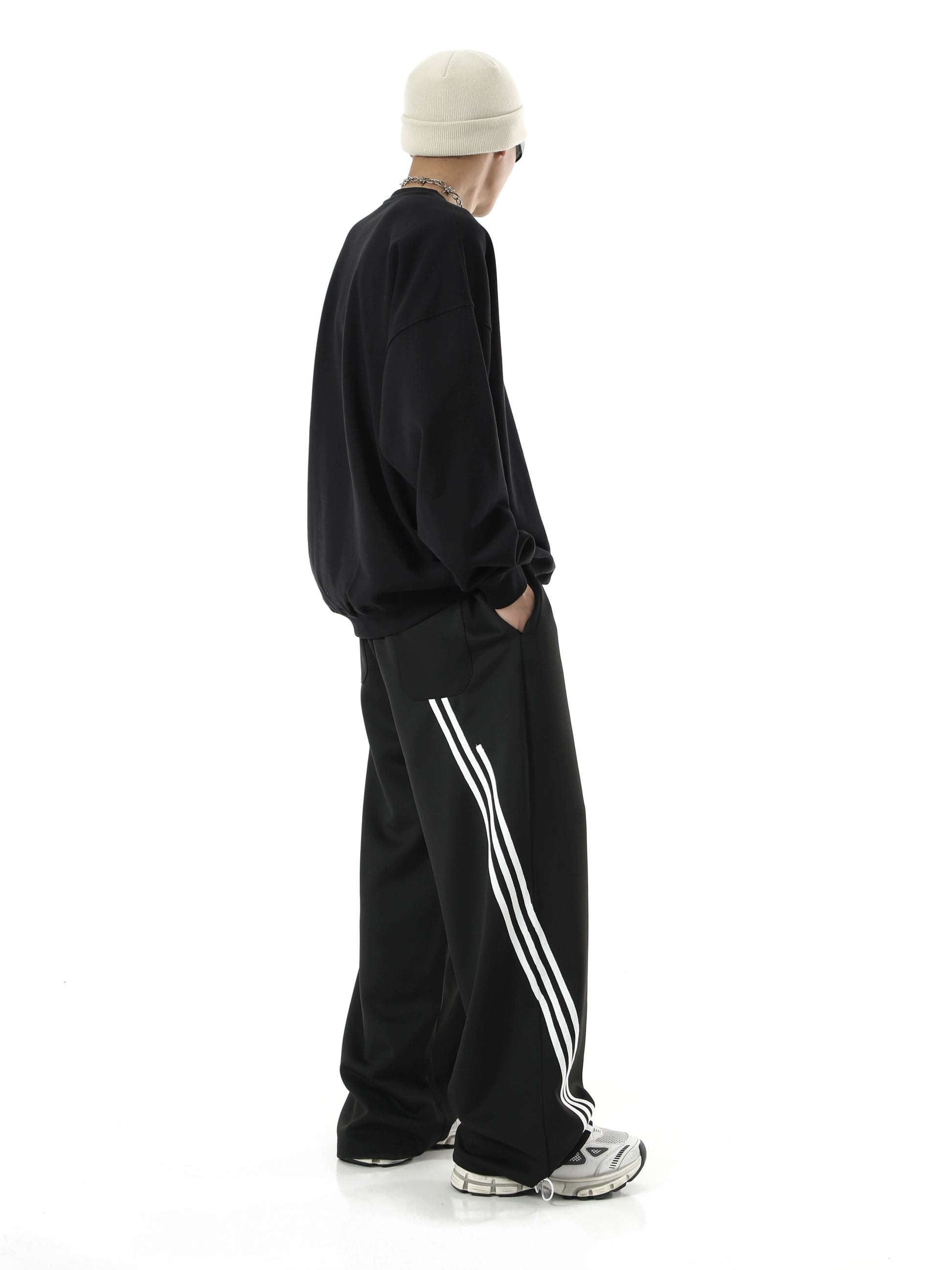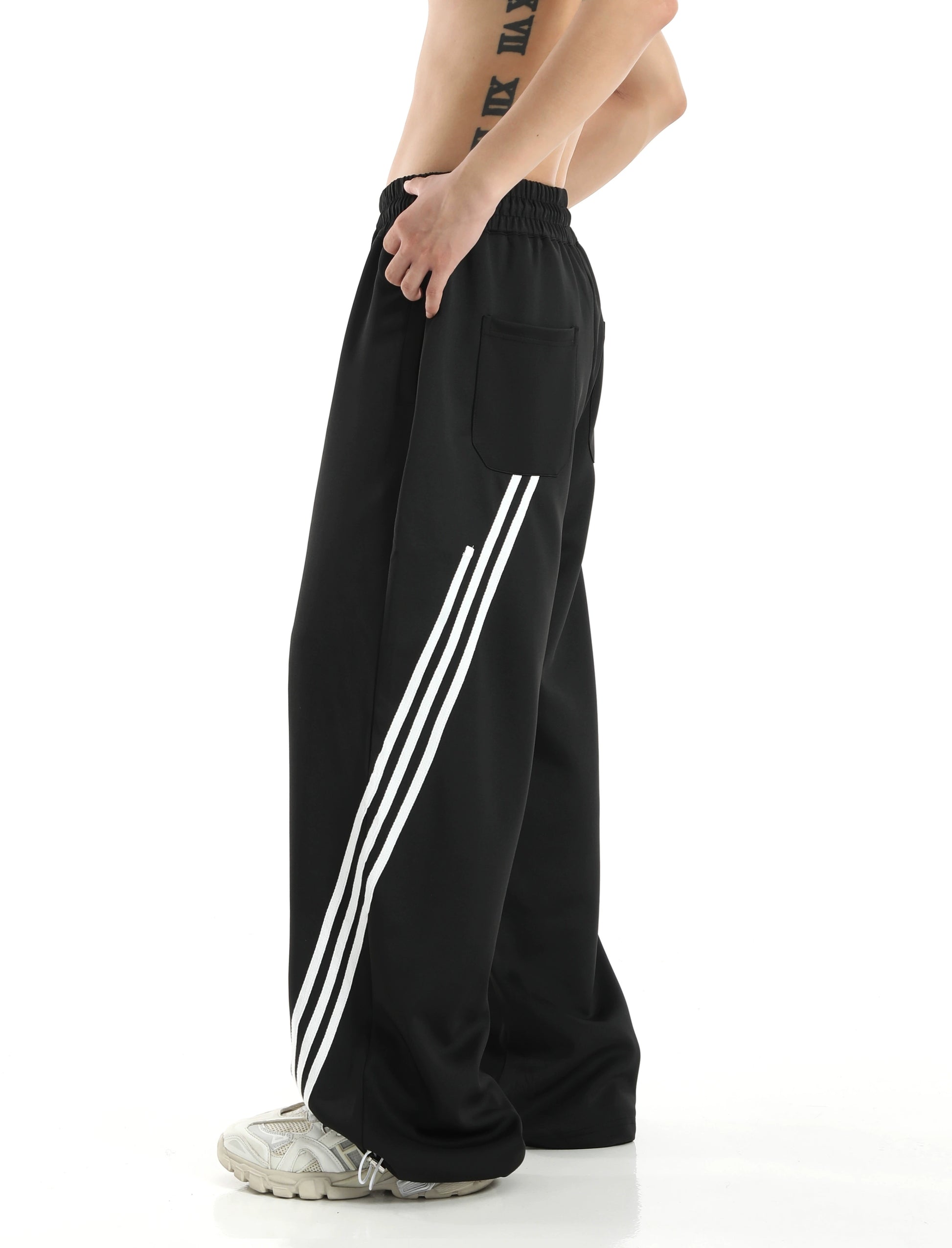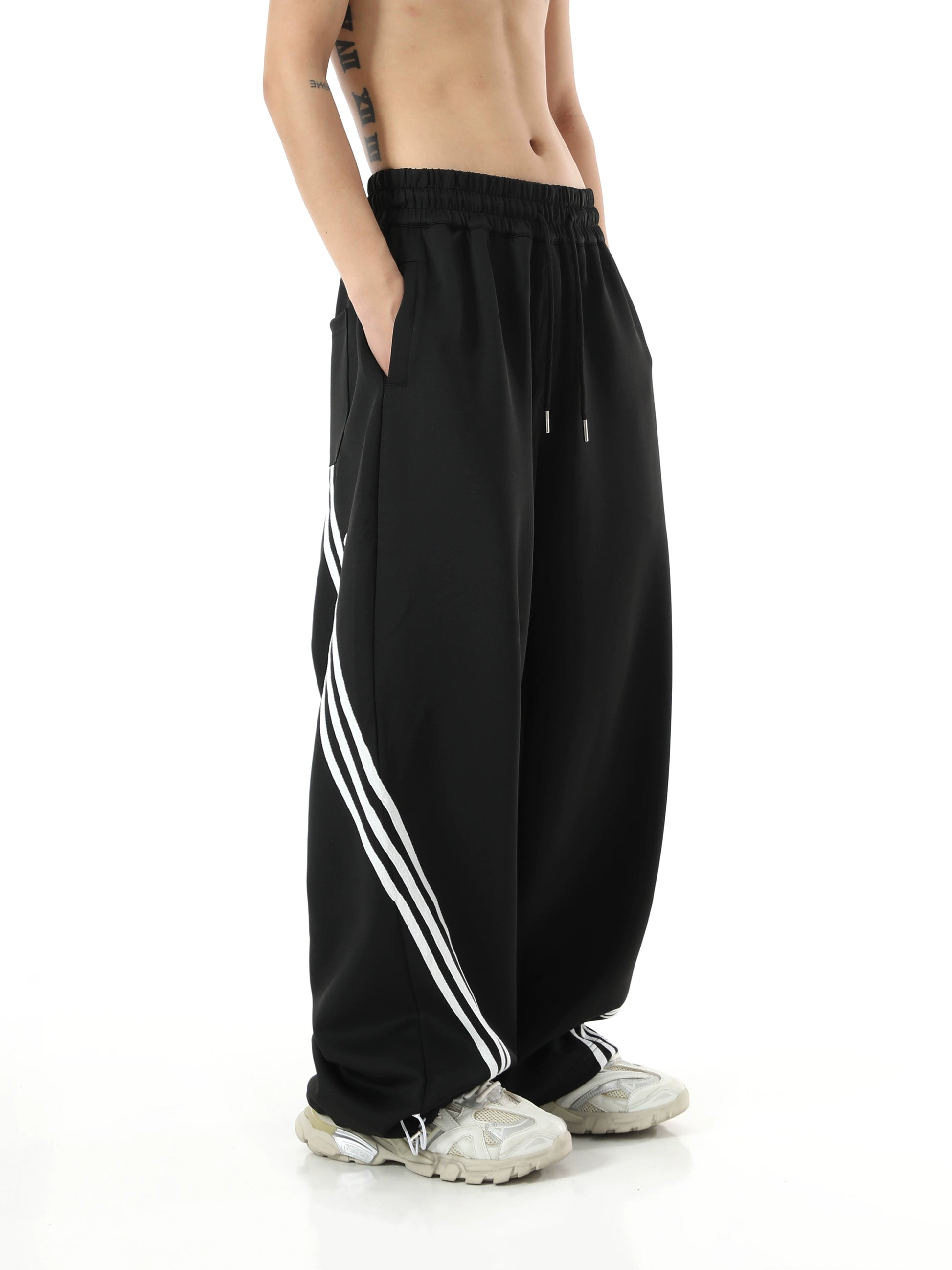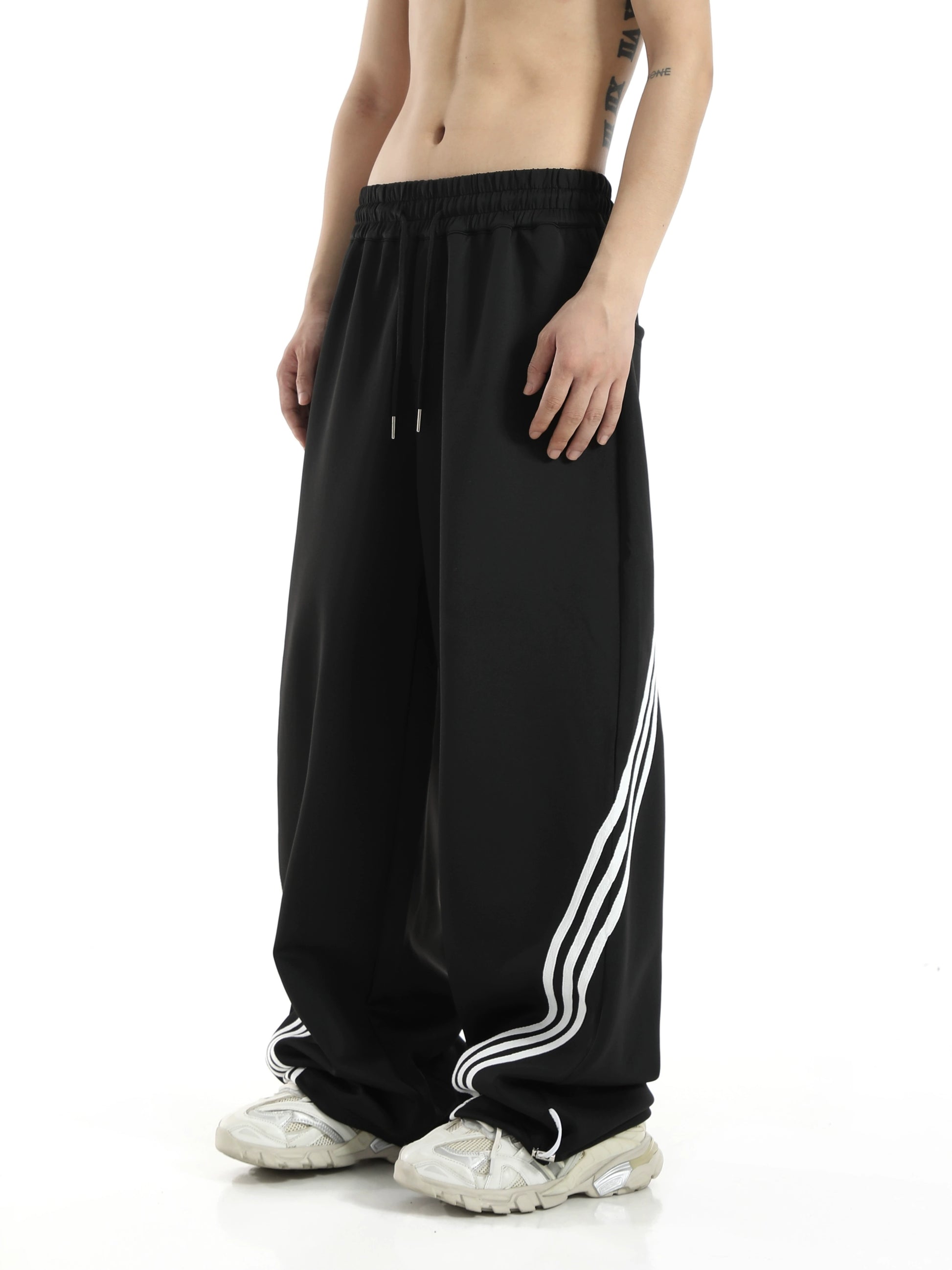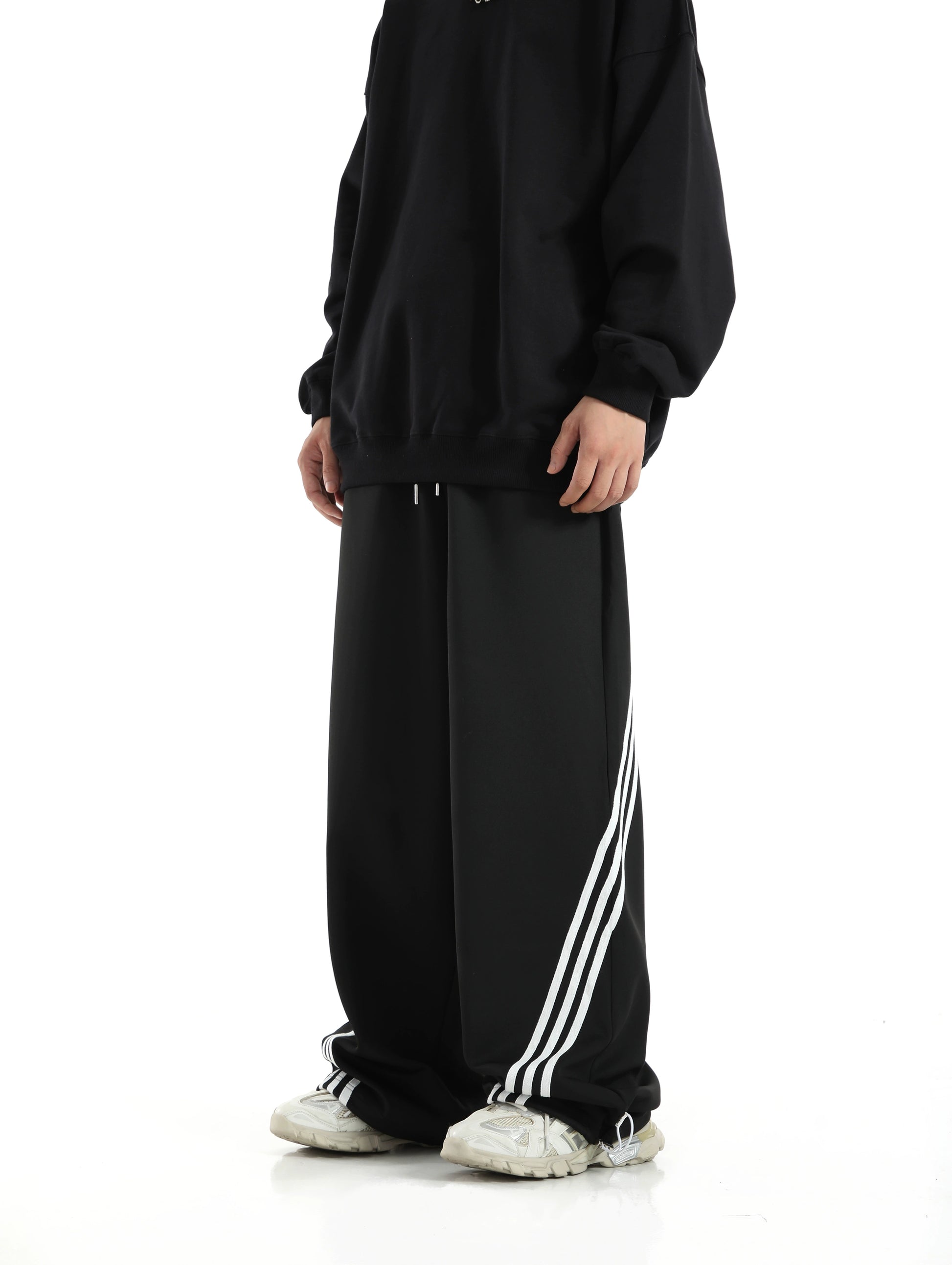 ストライプディテール ワイドレッグ スウェットパンツ