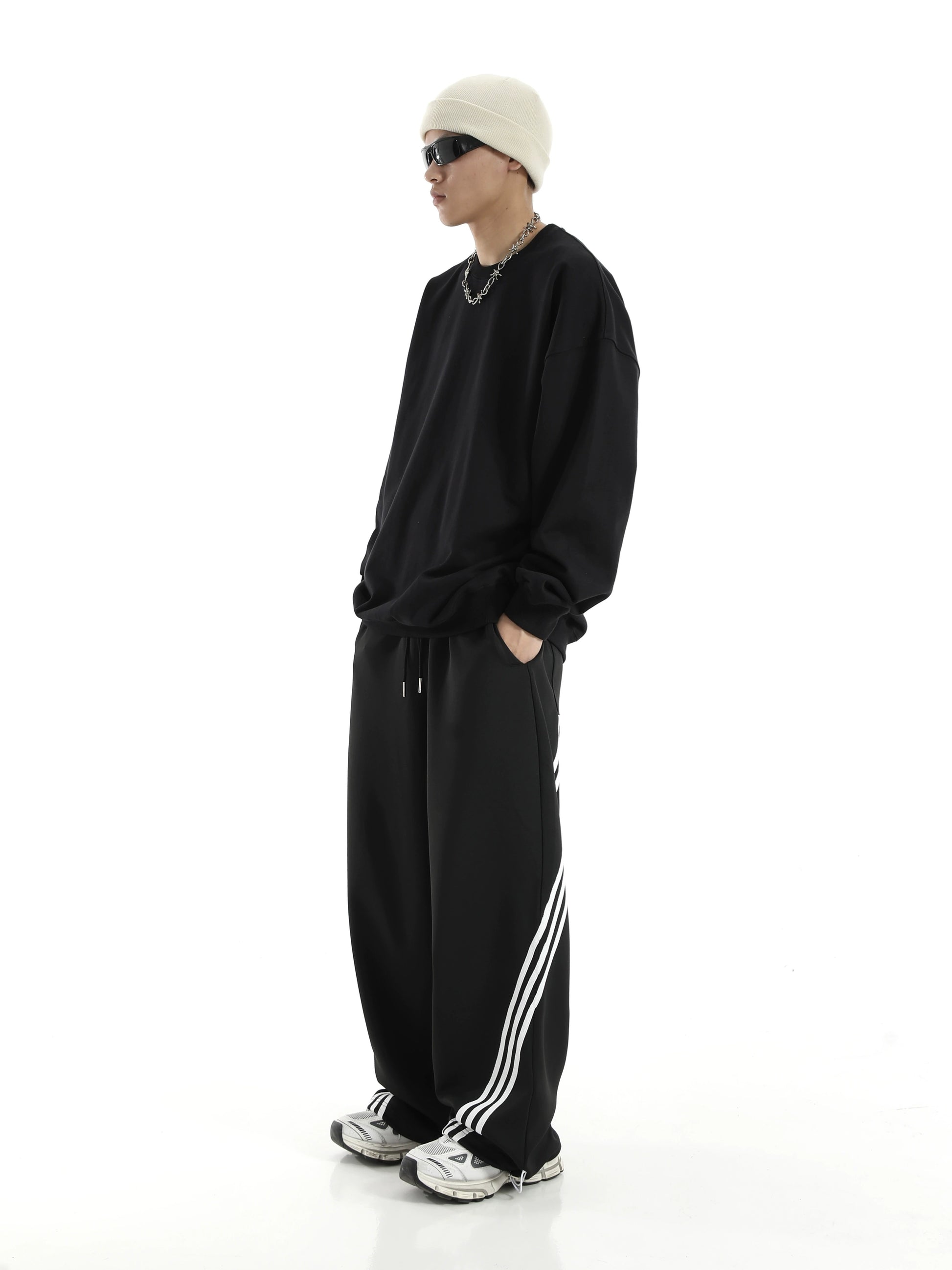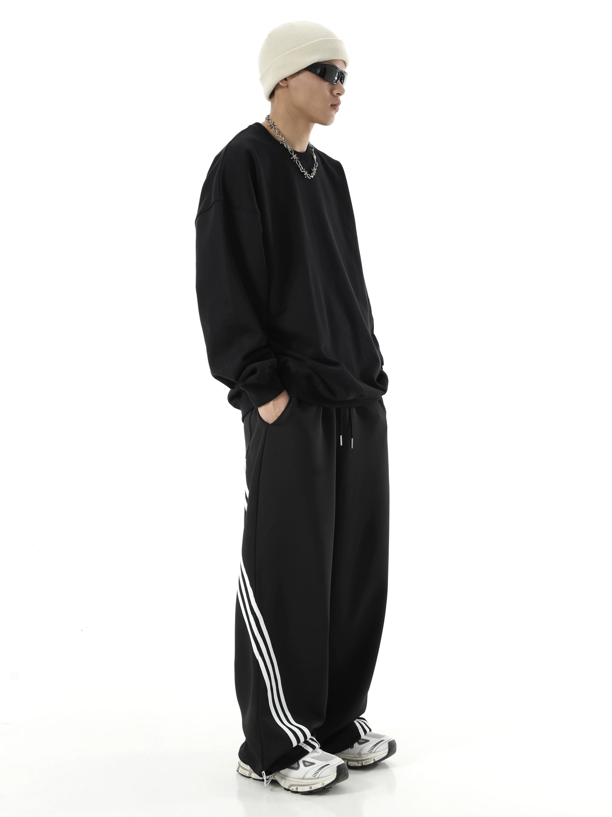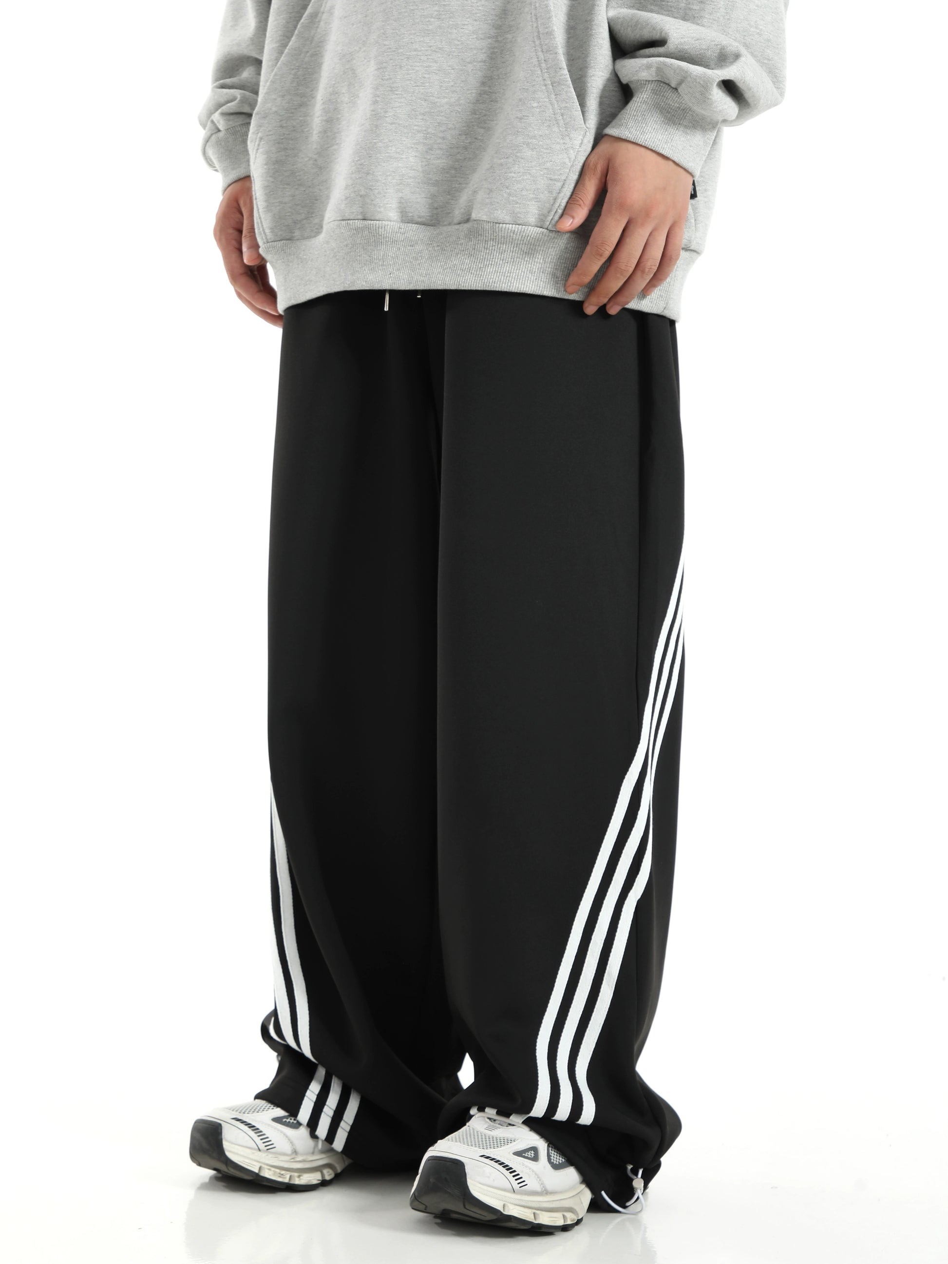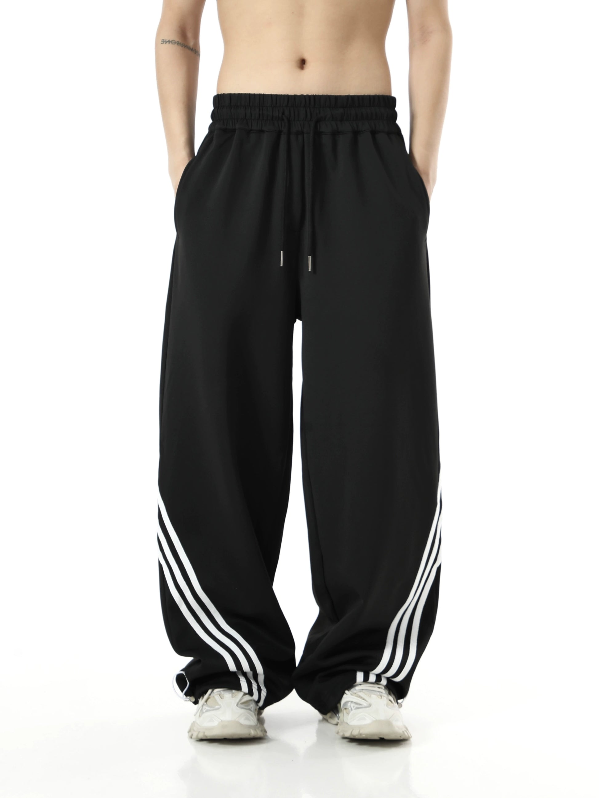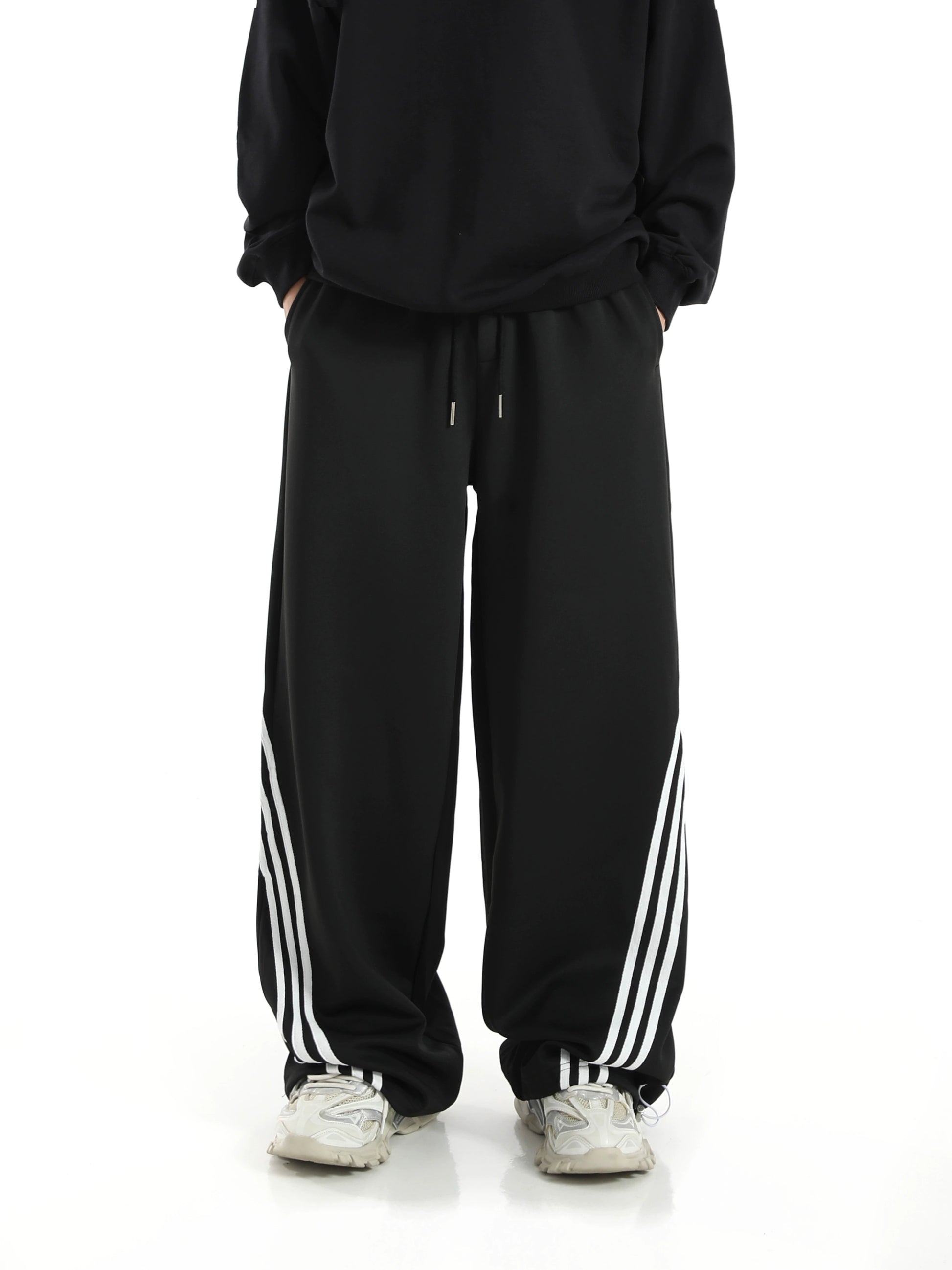 ストライプディテール ワイドレッグ スウェットパンツ