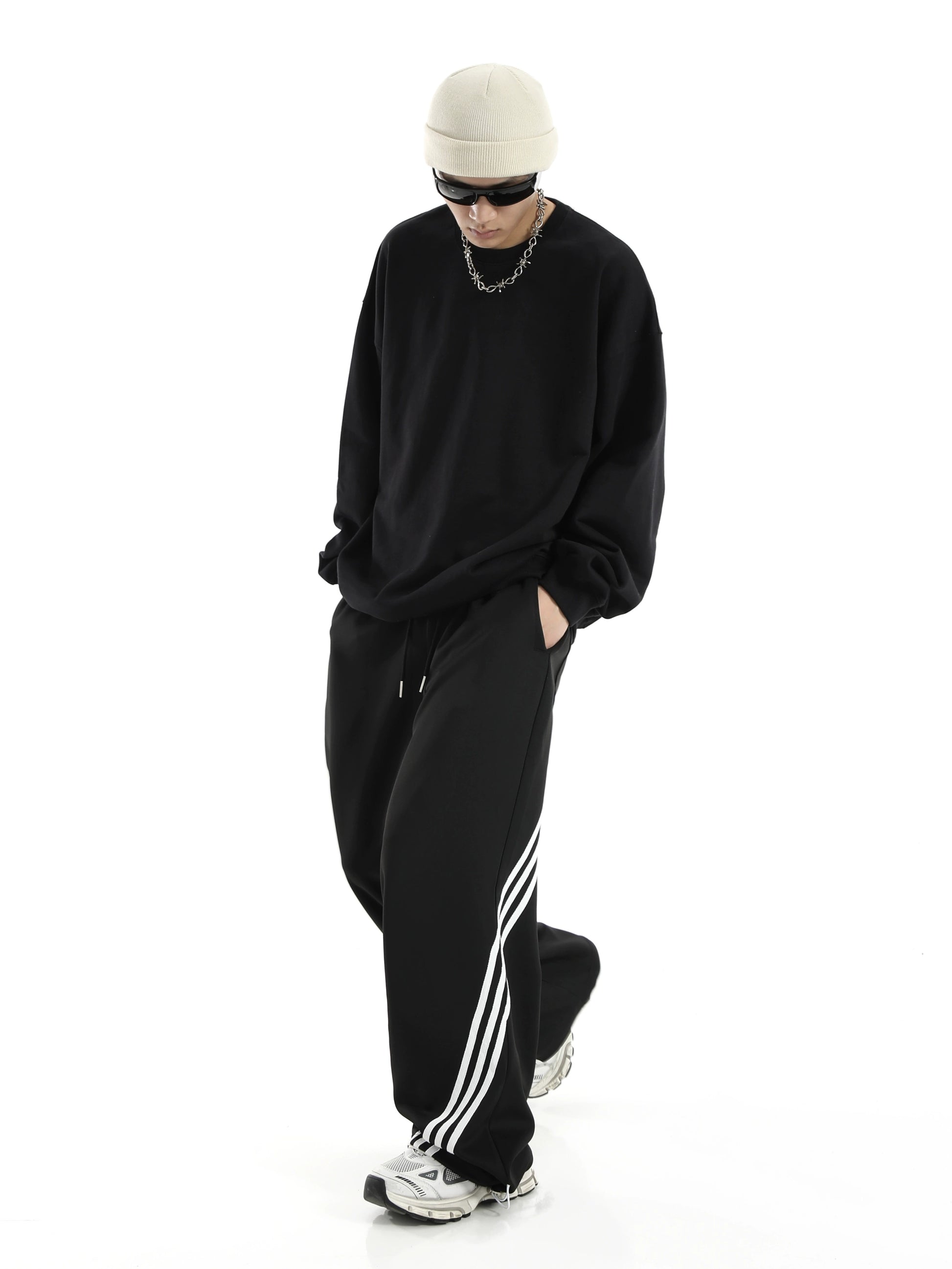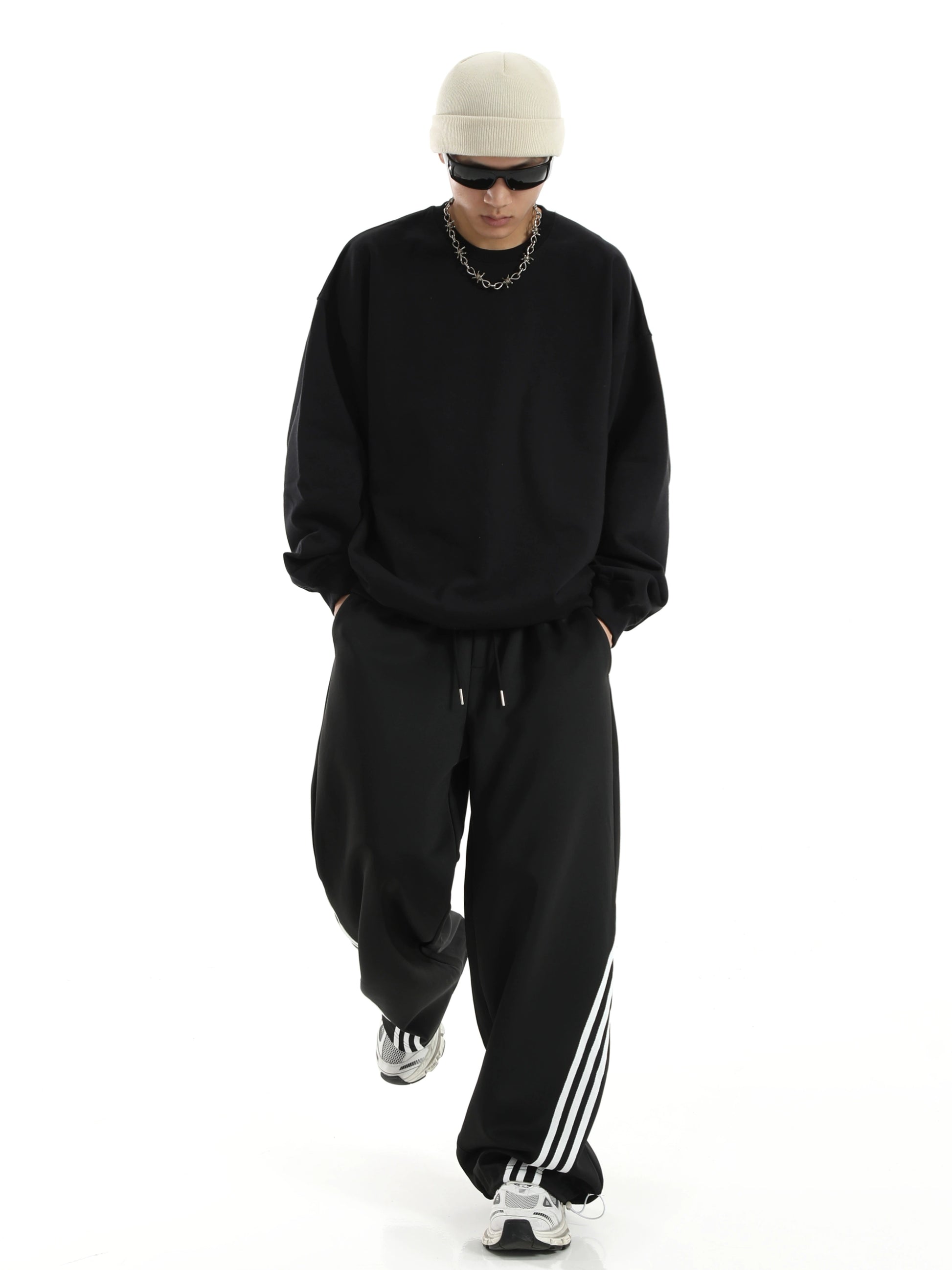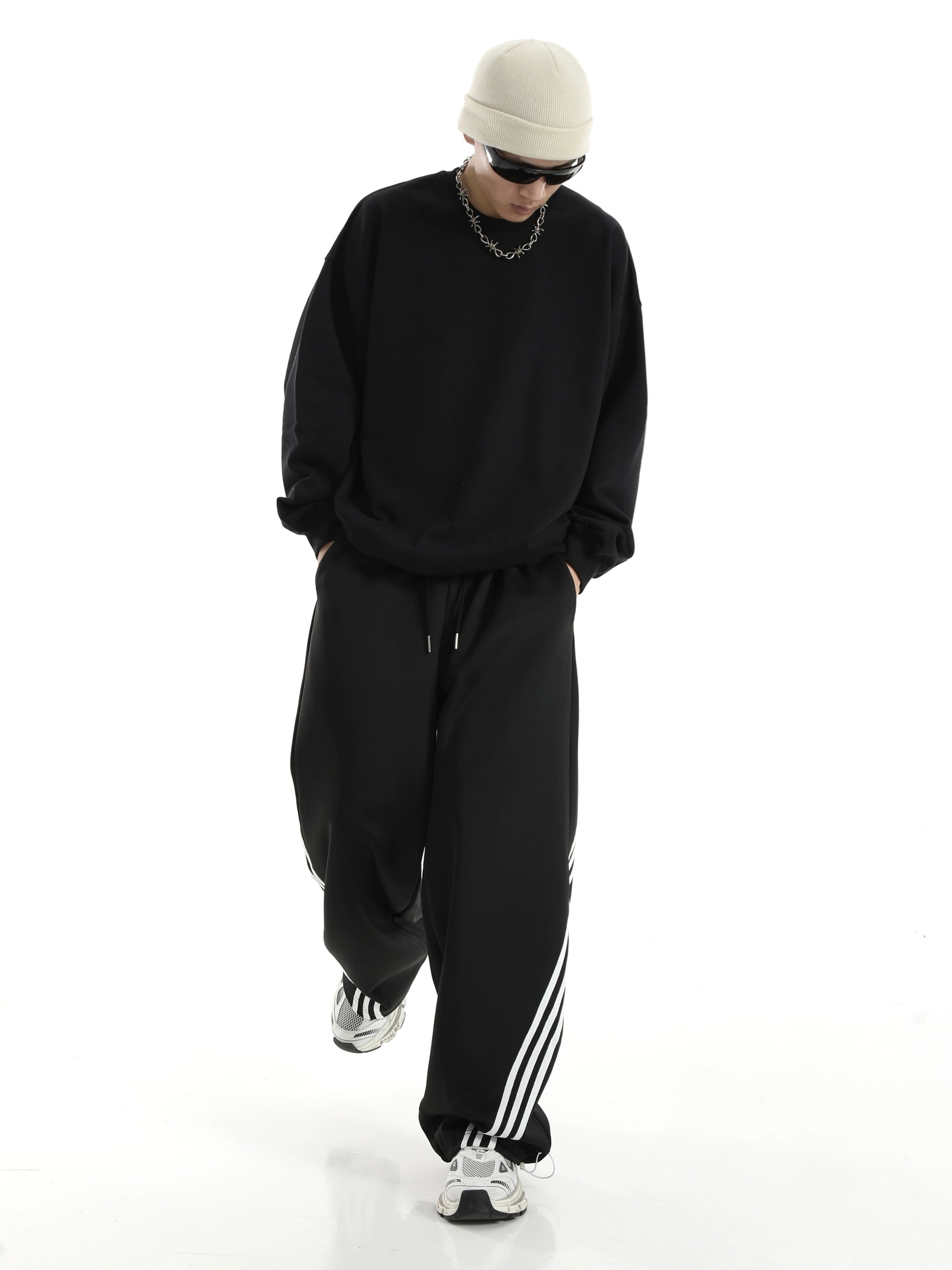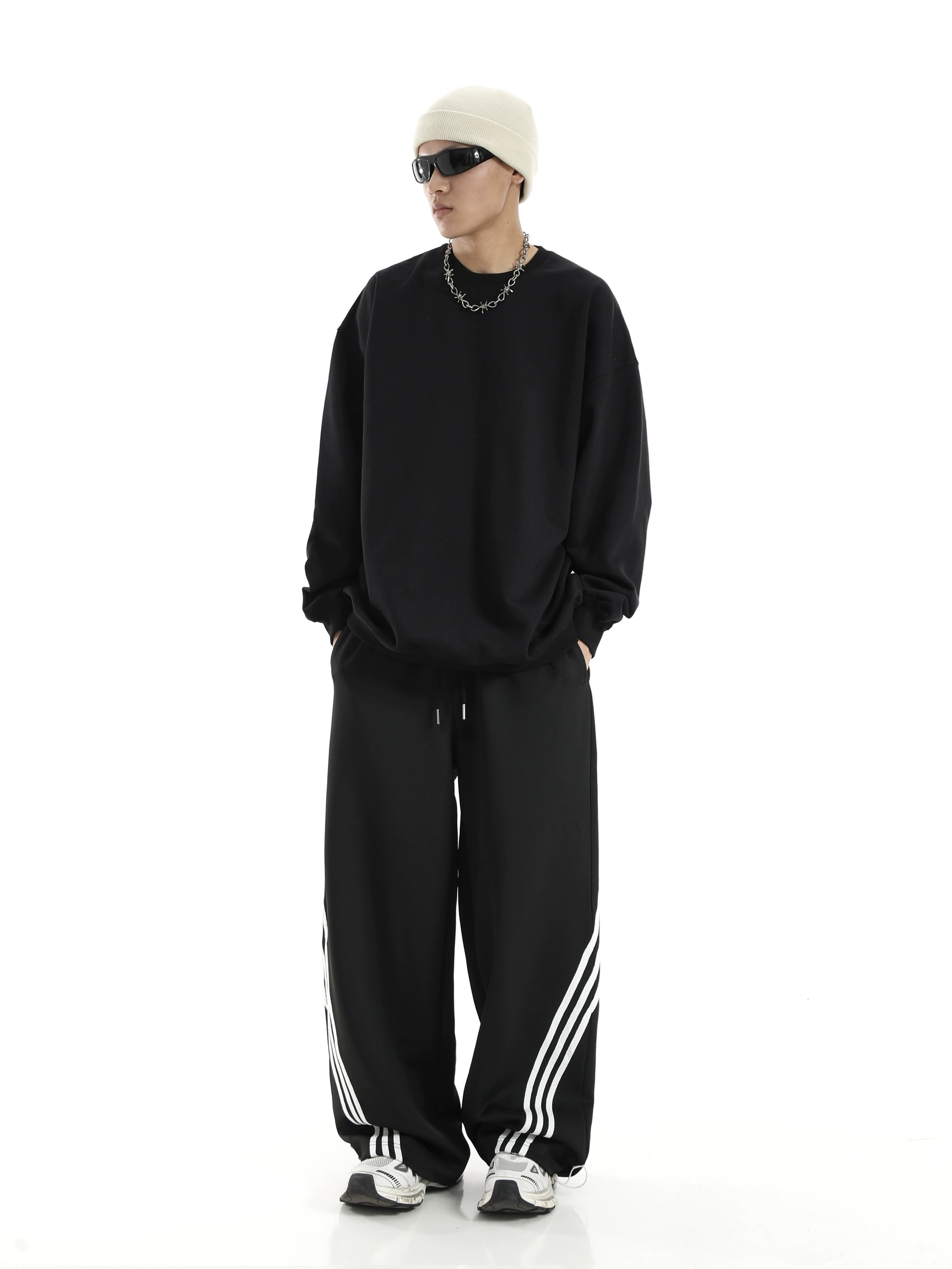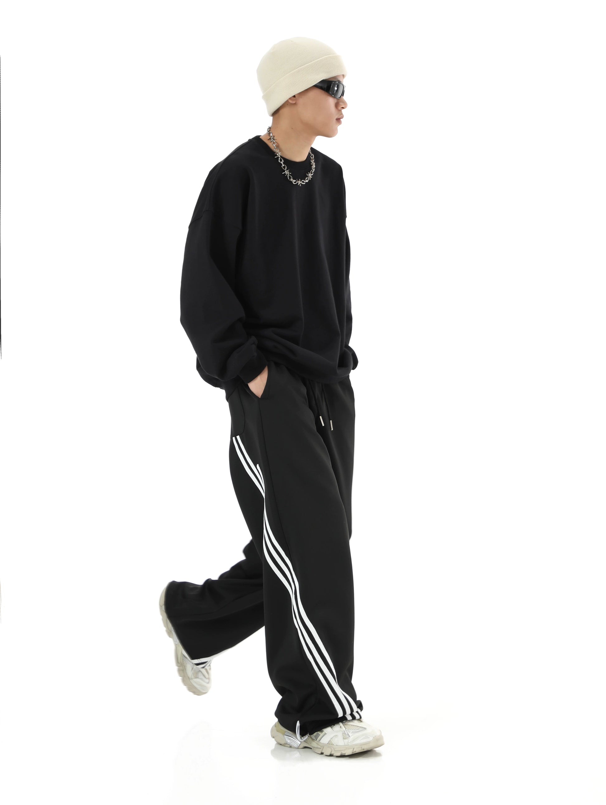 ストライプディテール ワイドレッグ スウェットパンツ