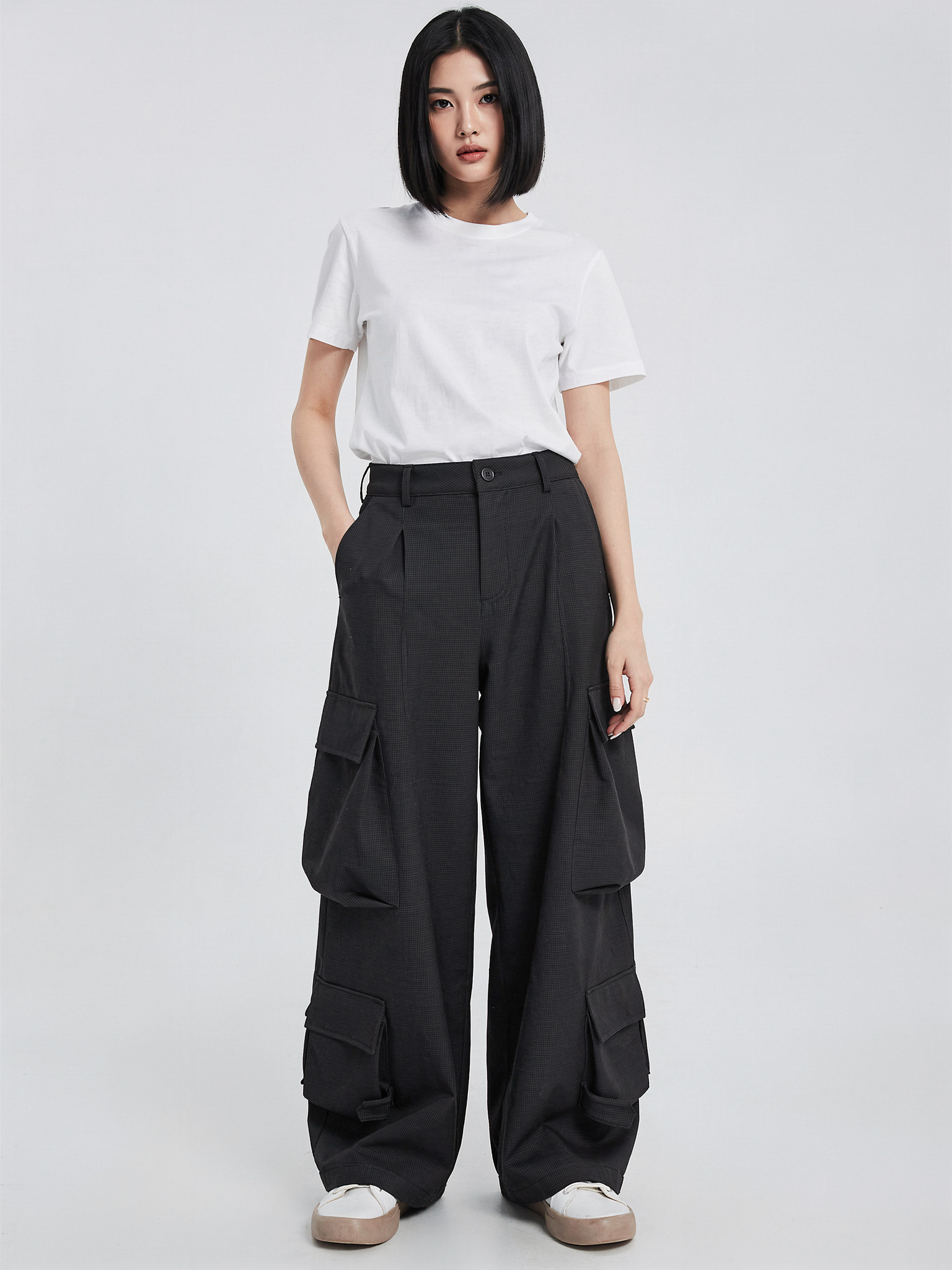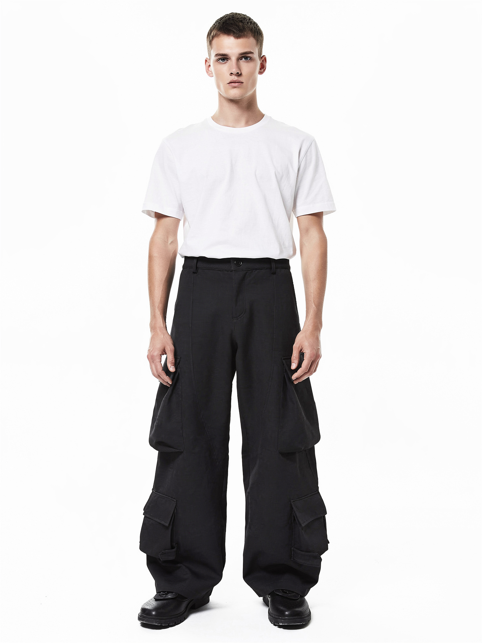 - 仕様:全松緊(総ゴム)ウエスト / 裾ドローコード / 左右カーゴポケット