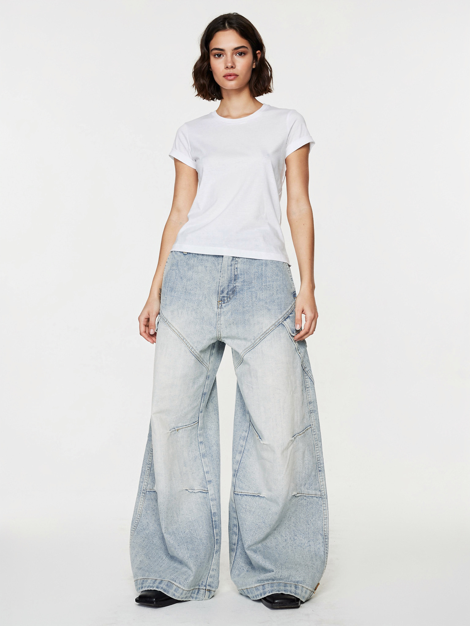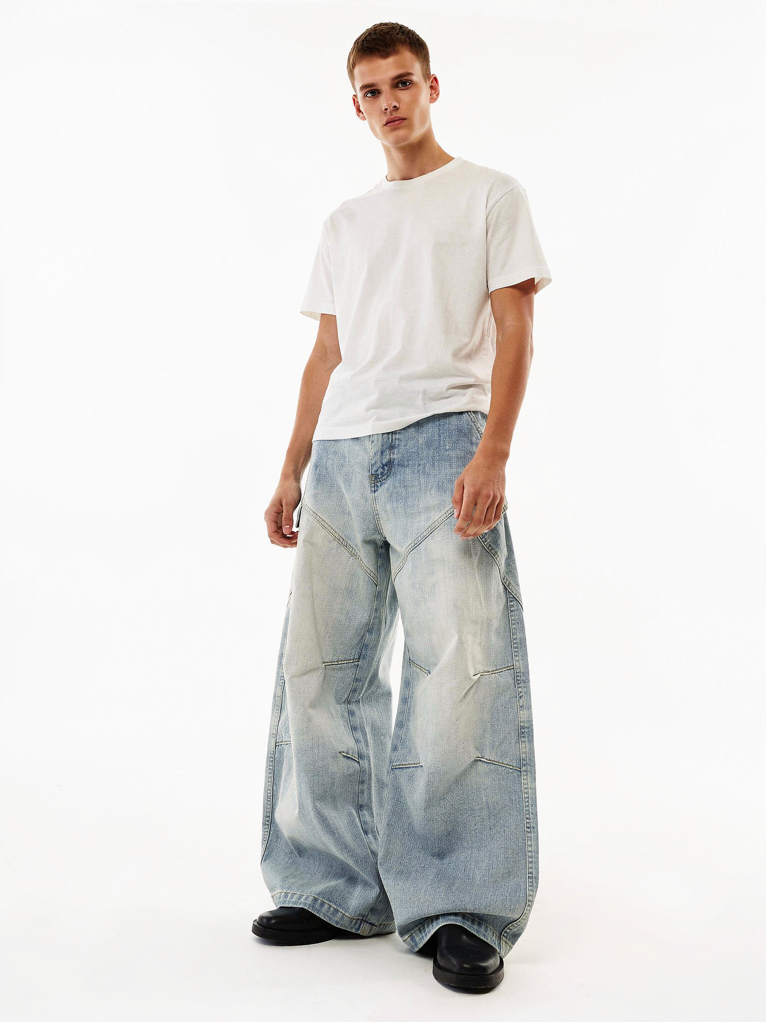圧倒的な存在感を放つパネルデザインが、ストリートの視線を独占するワイドデニム。