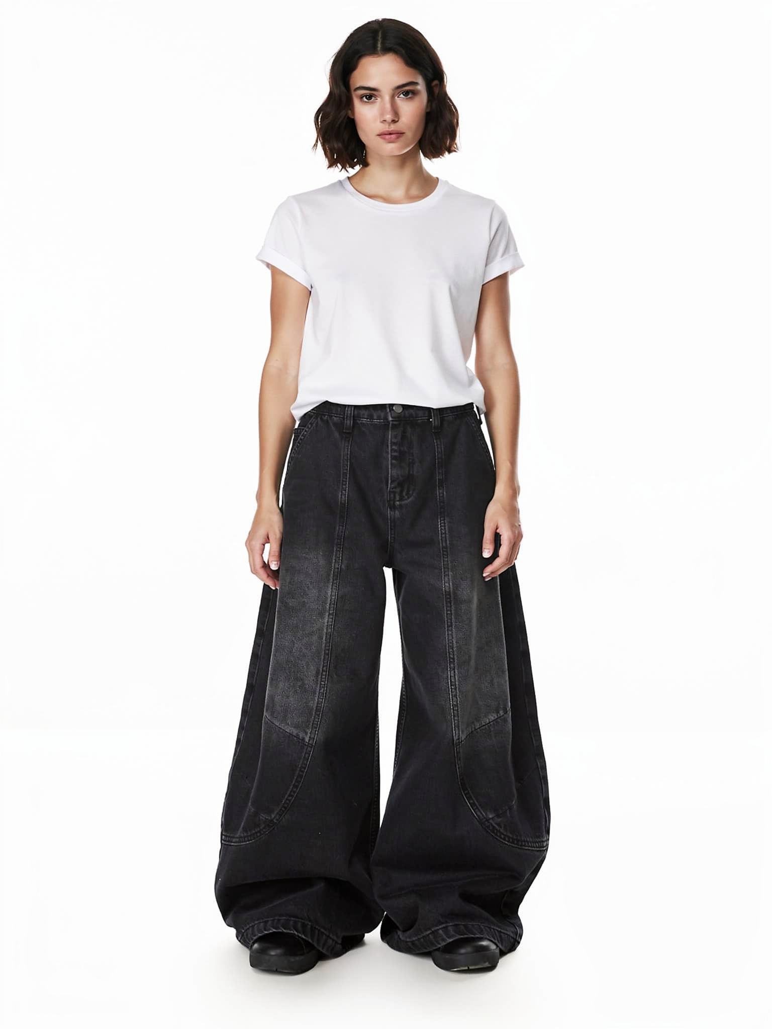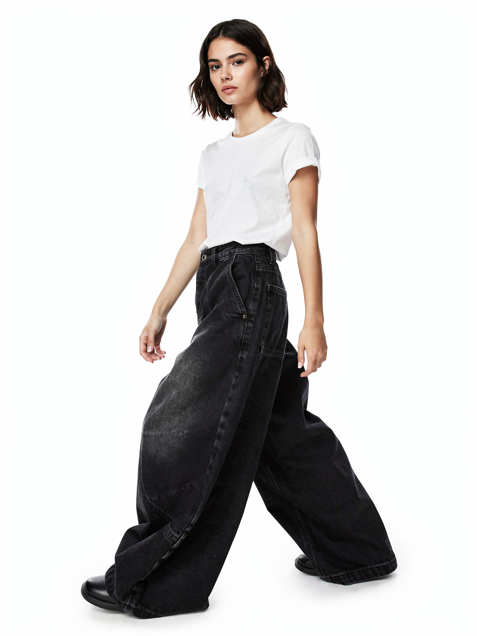 ワイドストレートシルエット 膝から裾までストンと落ちるボリュームライン。