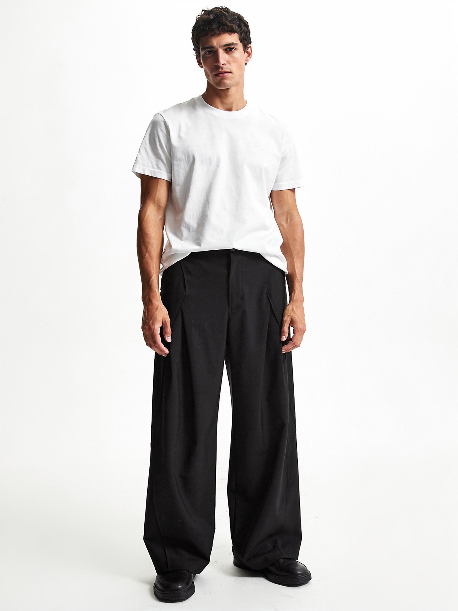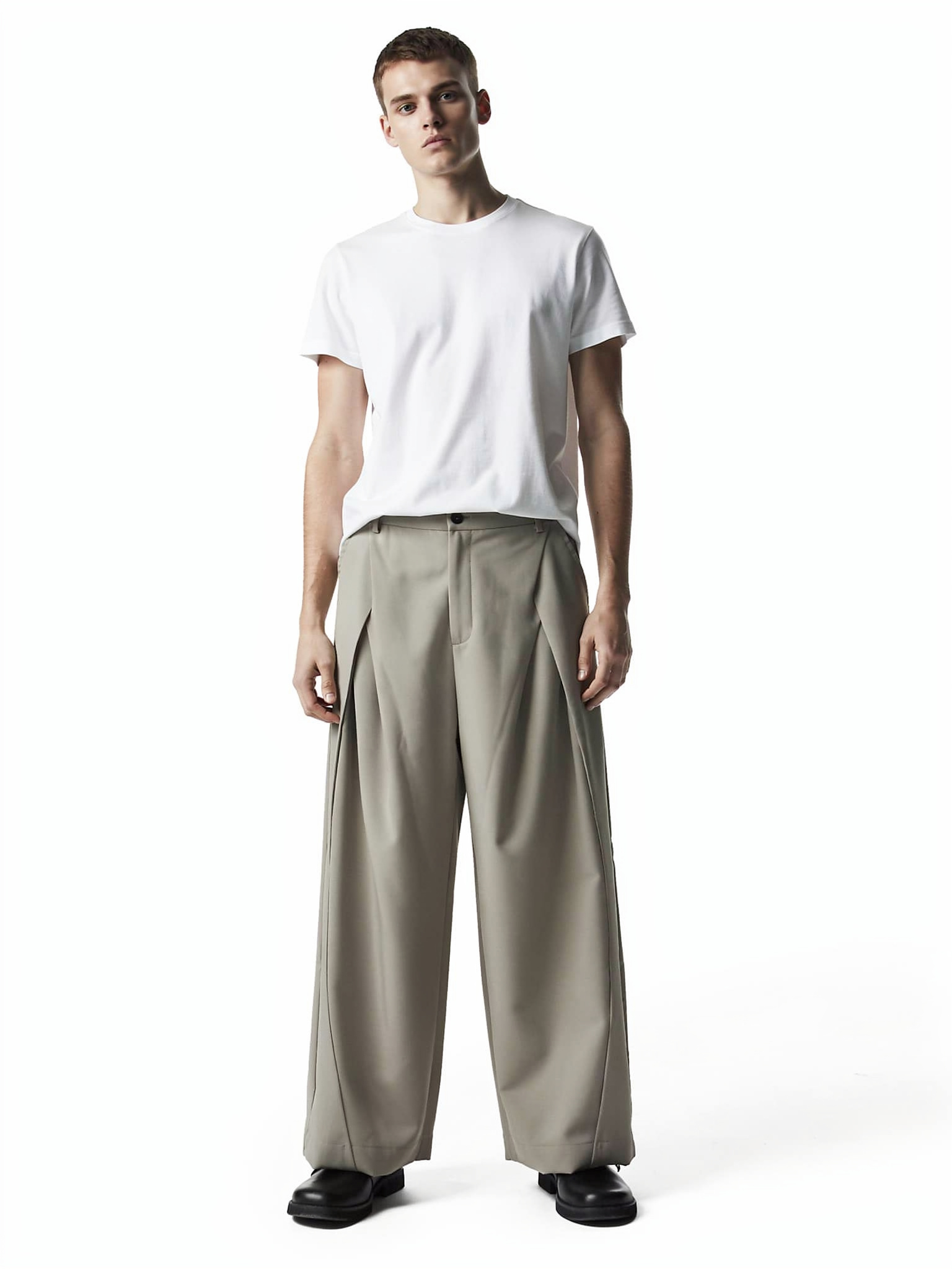 • シルエット:ワイドストレート / 立体プリーツ設計